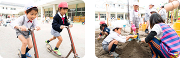 園庭を走り回り、お友達とボール遊びをしたり、砂場でお山を作ったりして自分達から積極的に遊びます。